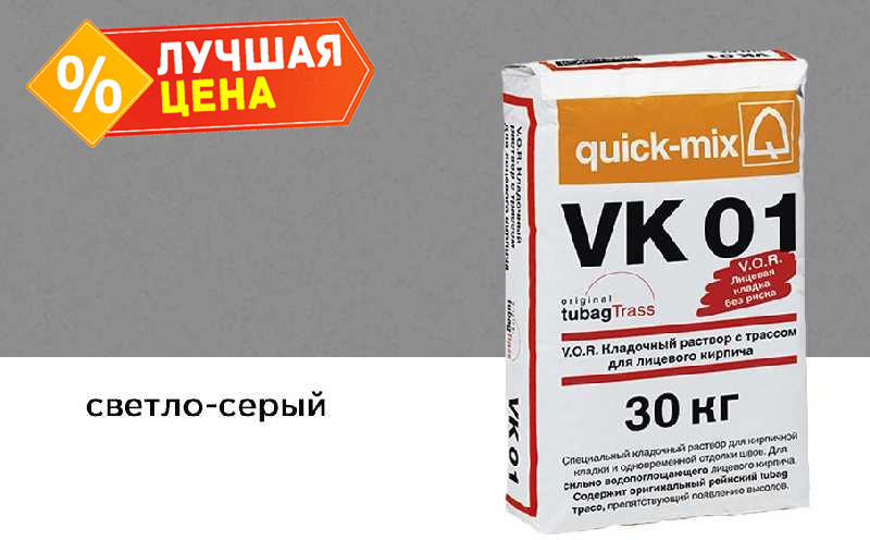 • раствор VK 01 - специальная сухая смесь для кладки сильно водопоглощающего лицевого кирпича (или камня) с водопоглощением 8-10%.