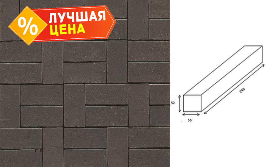 Клинкерная брусчатка Muhr №05 Eisenschmelz Schwarzbraun, 240x55x52 мм
